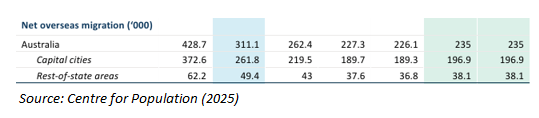 Since the end of 2019, NOM has averaged 266,000 per year. This is significantly above the 226,000 average NOM during the 15 years of ‘Big Australia’ before the pandemic.